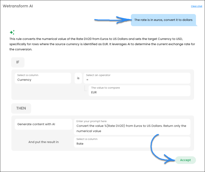 Tell WeTransform how to interpret the data